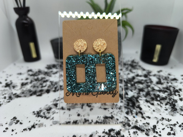 Boucles d'oreilles rectangle (large) paillettes bleu turquoise