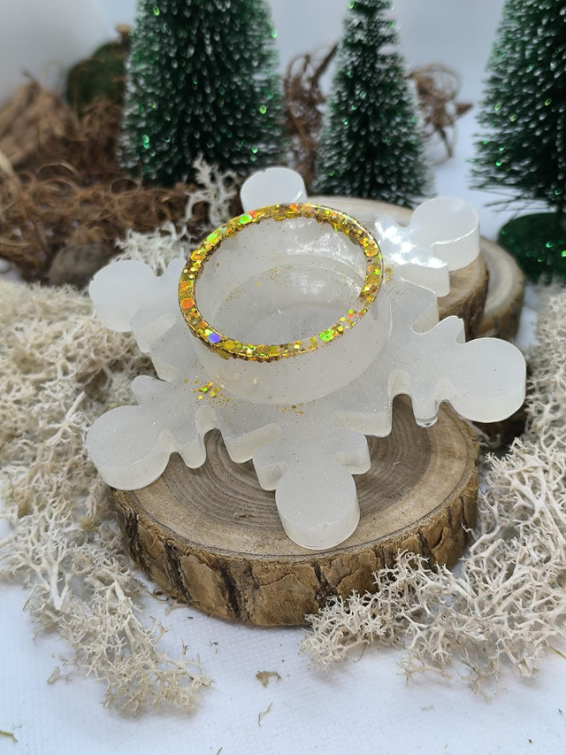 Bougeoir flocon blanc et doré