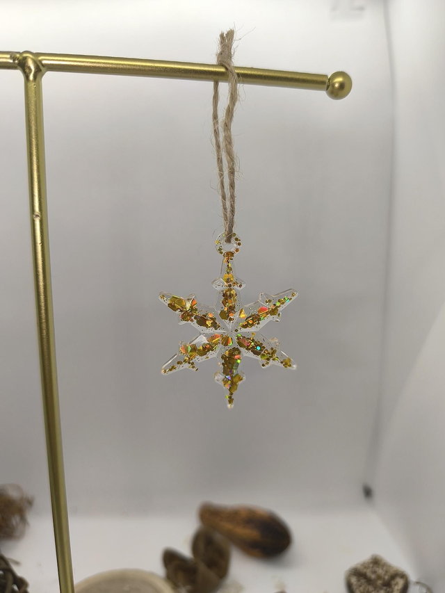 Décoration étoile sapin noel doré pailleté