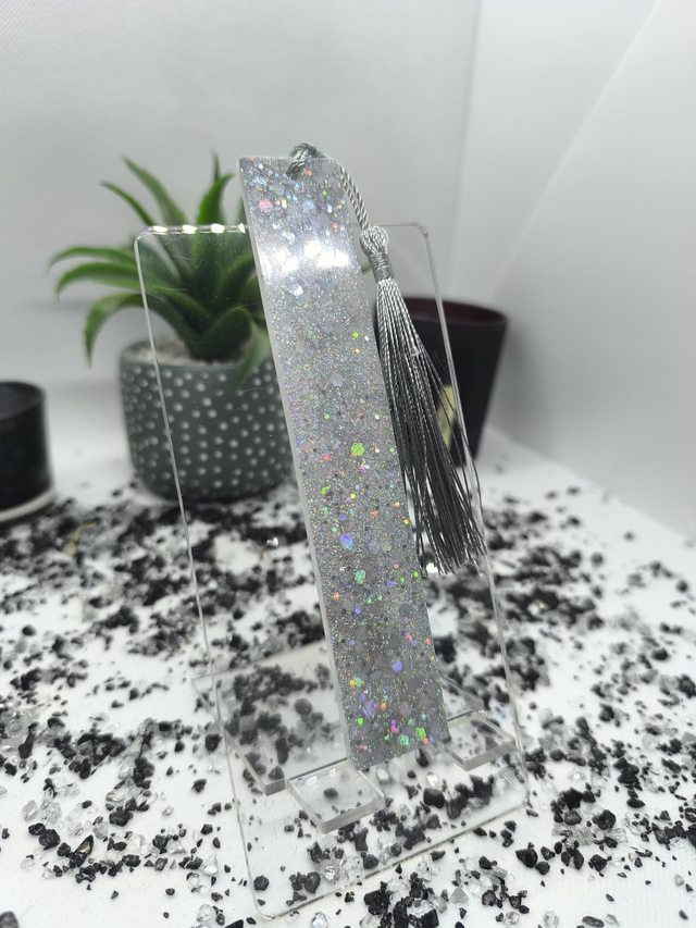 Bague de lecture bicolore bleu turquoise pailleté et blanc