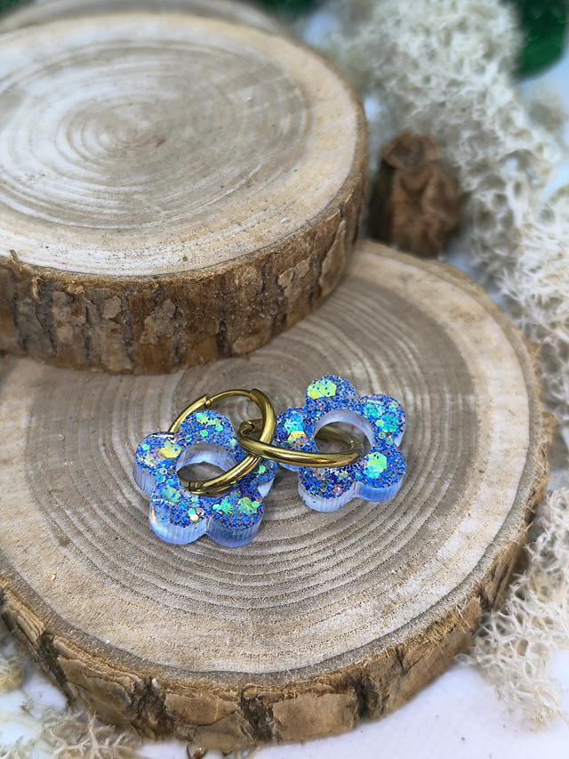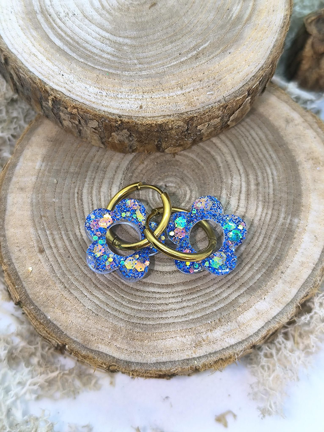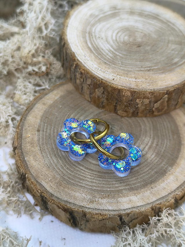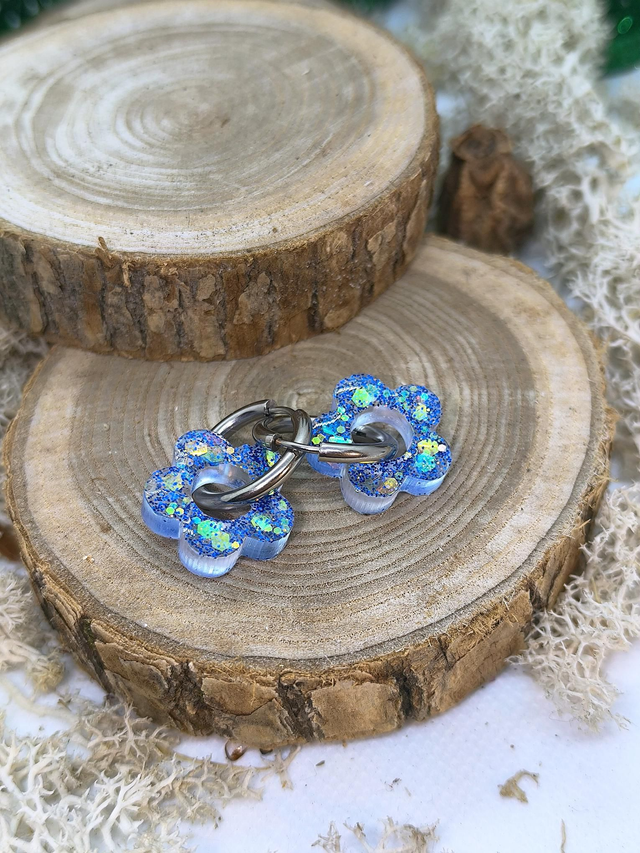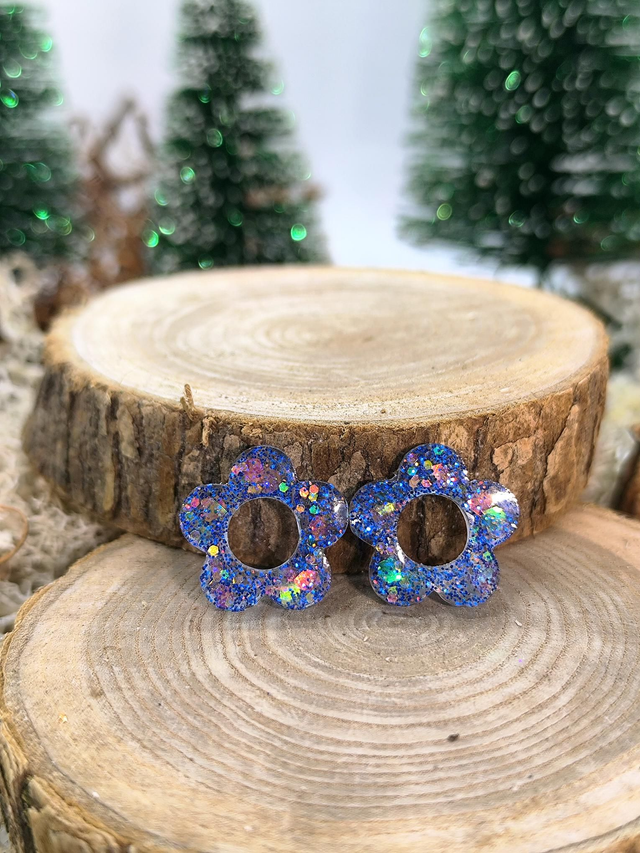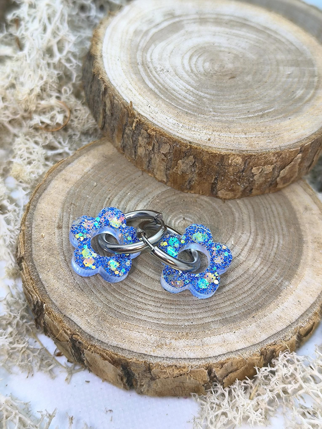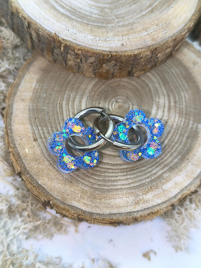 Sublimez votre style avec ces fleurs artisanales en résine, mélangeant des paillettes bleu profond et des reflets holographiques magiques !