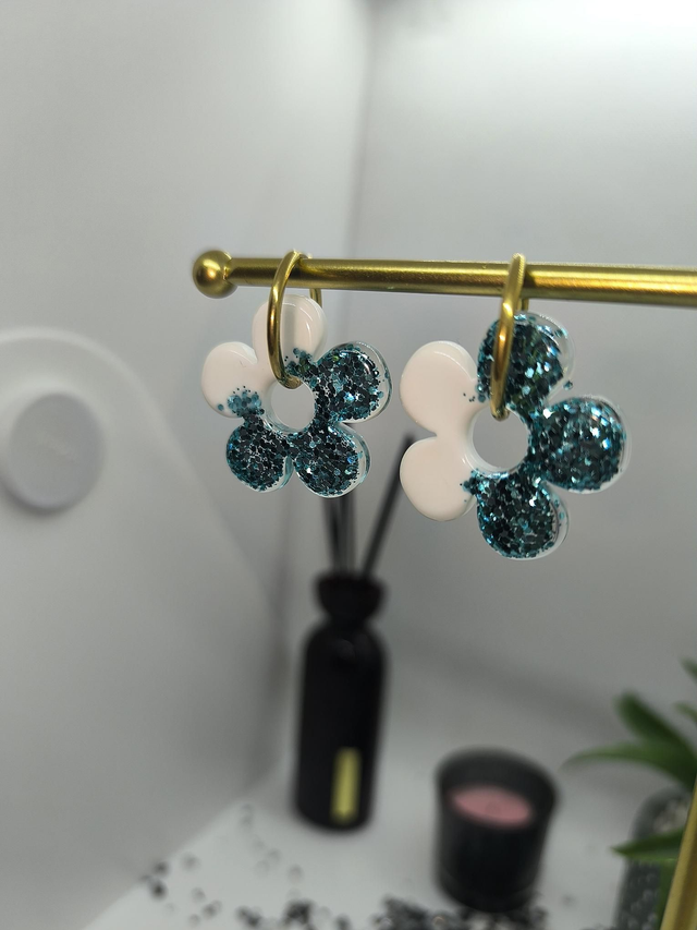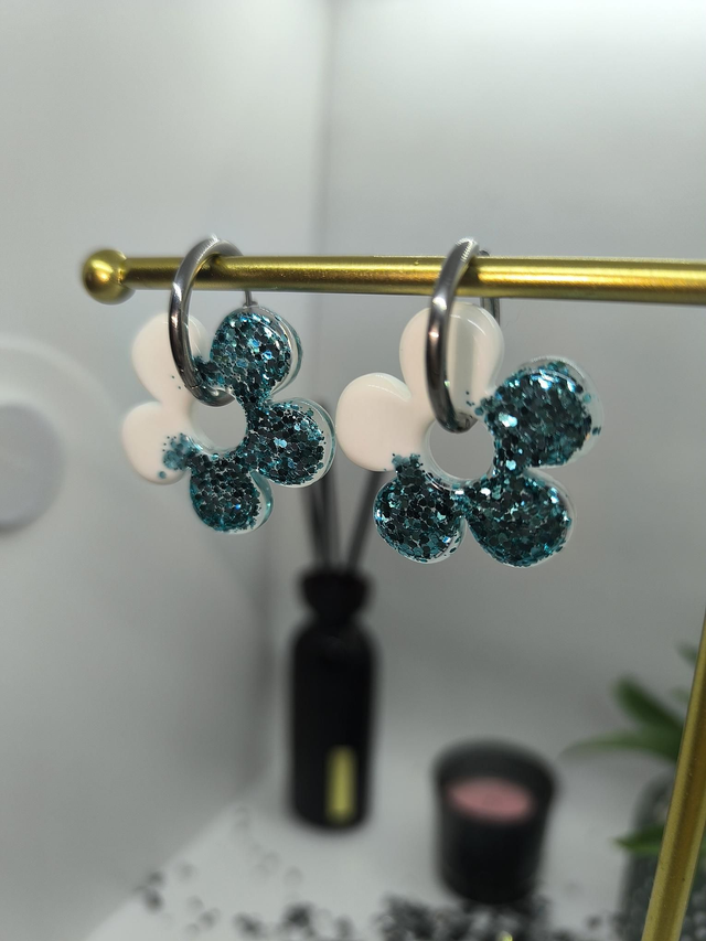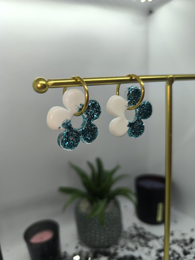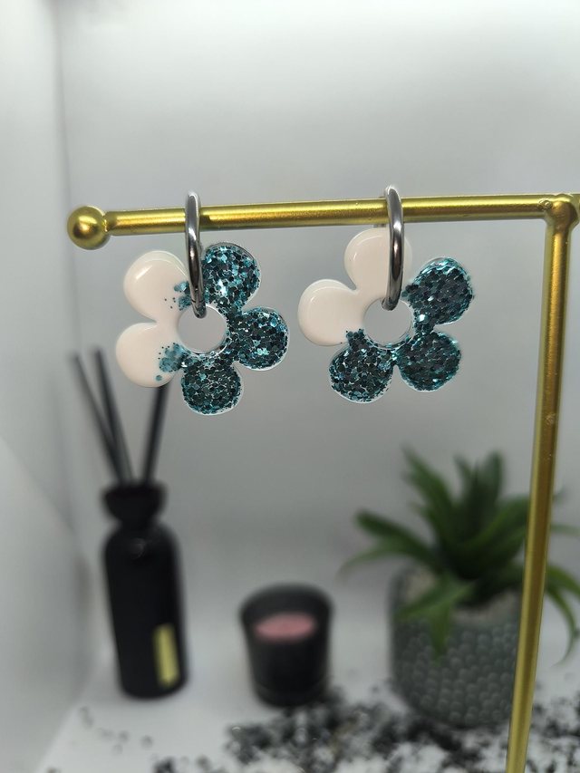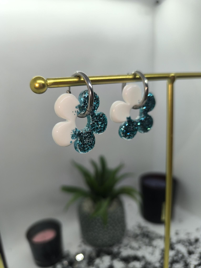 Pampilles interchangeables BORA bicolore bleu pailletté et blanc