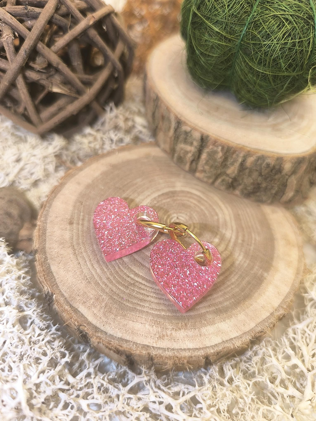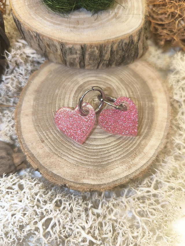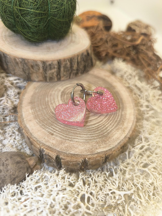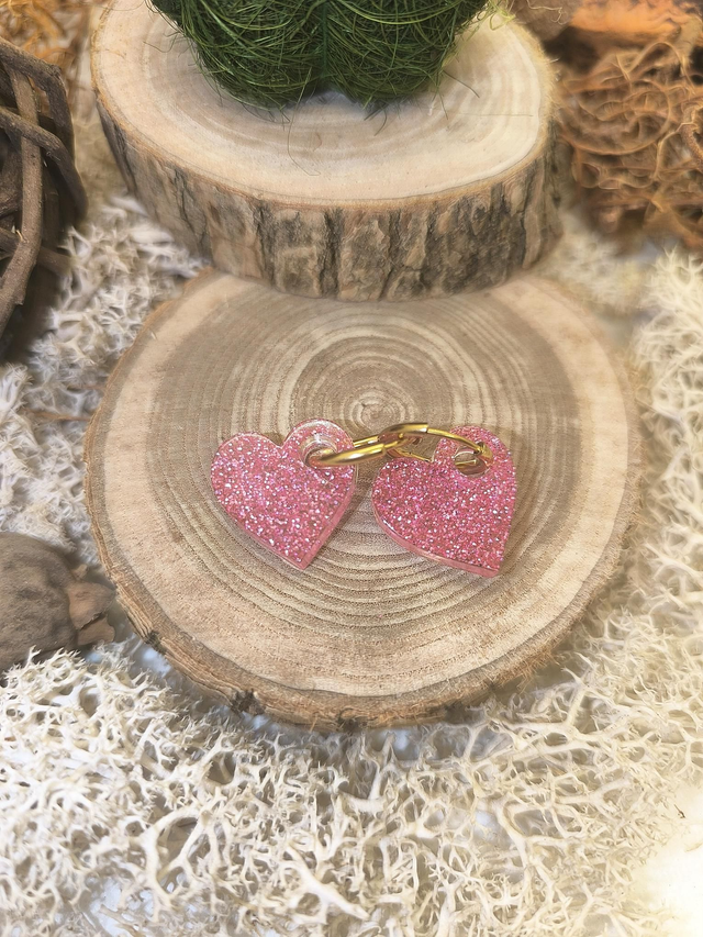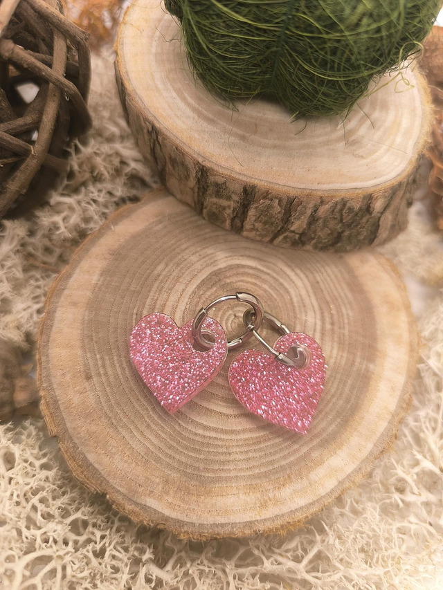Pampilles interchangeables coeur rose pailletté