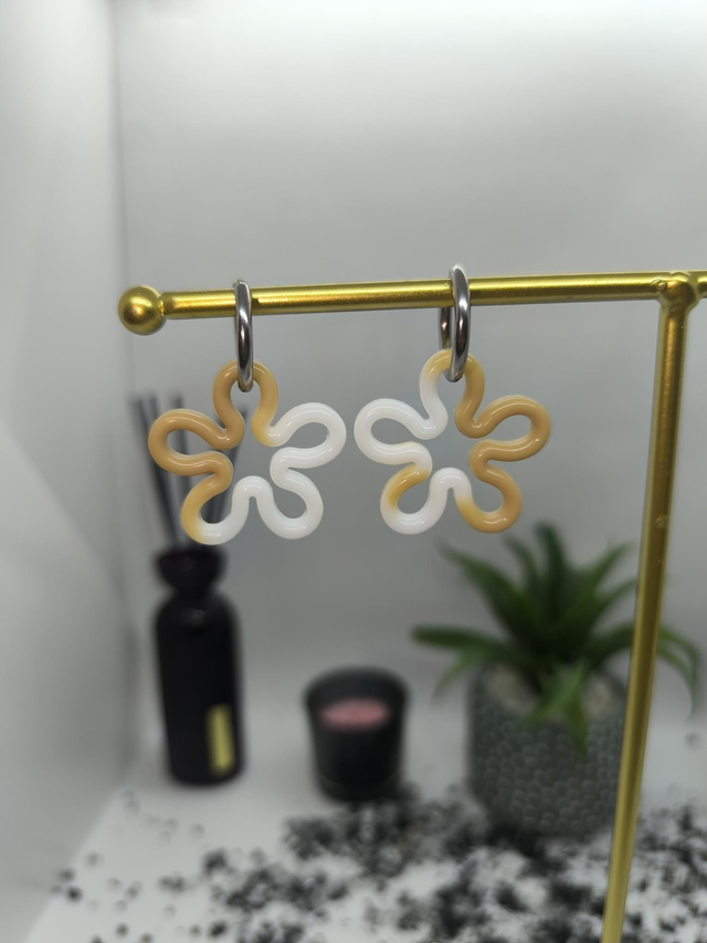 Pampilles interchangeables FLORA bicolore beige et blanc