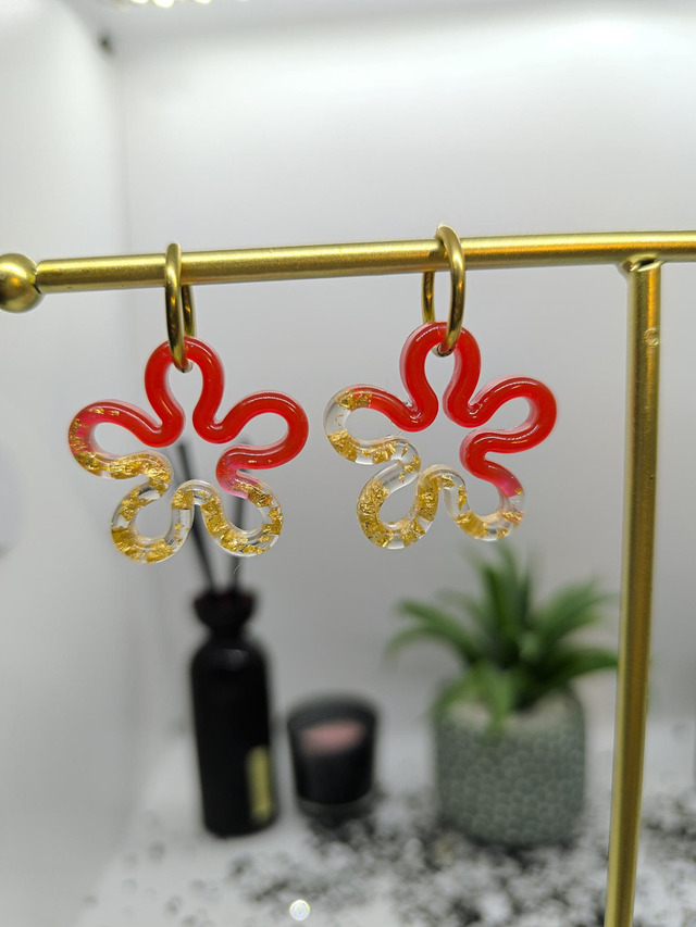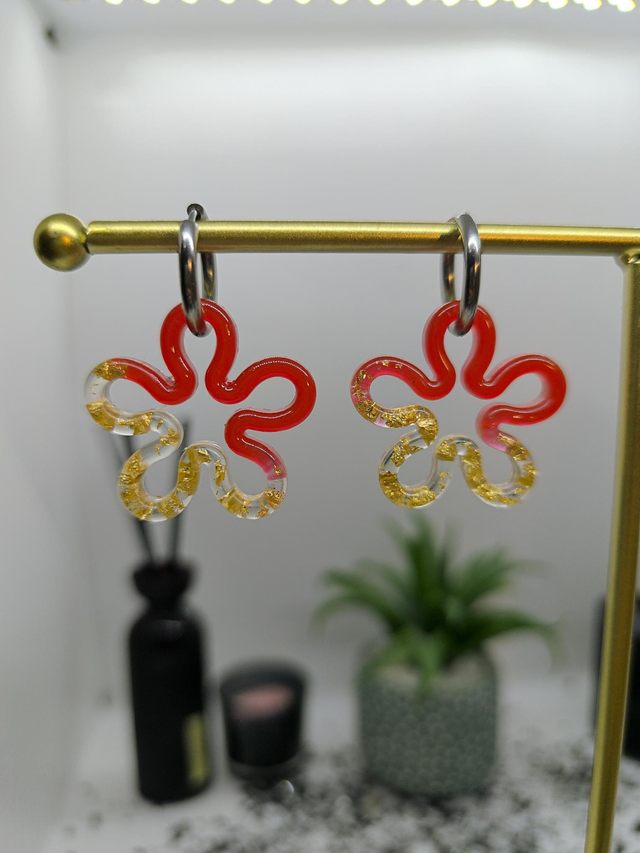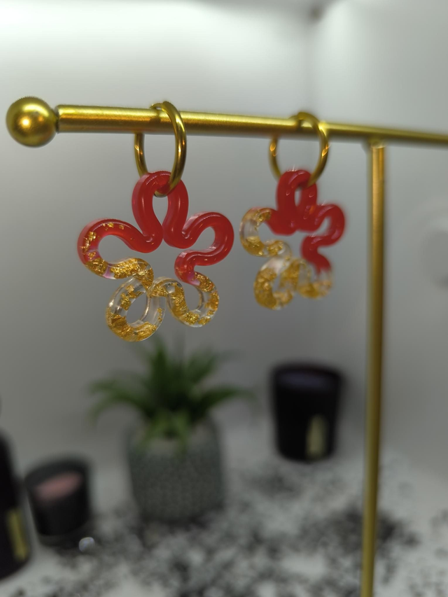 Pampilles interchangeables FLORA bicolore rouge et feuilles d'or