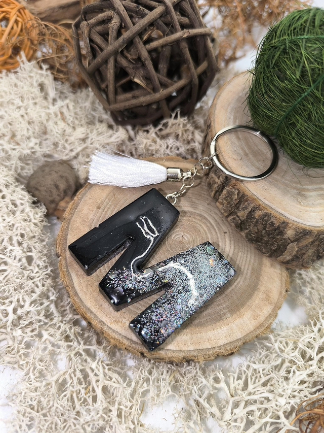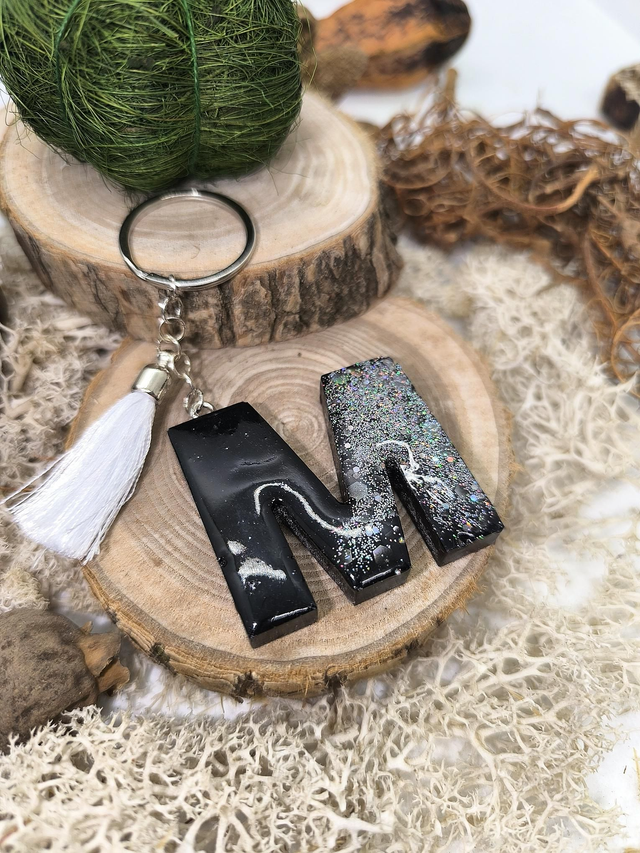 Porte clés initiale "M" noir et argenté