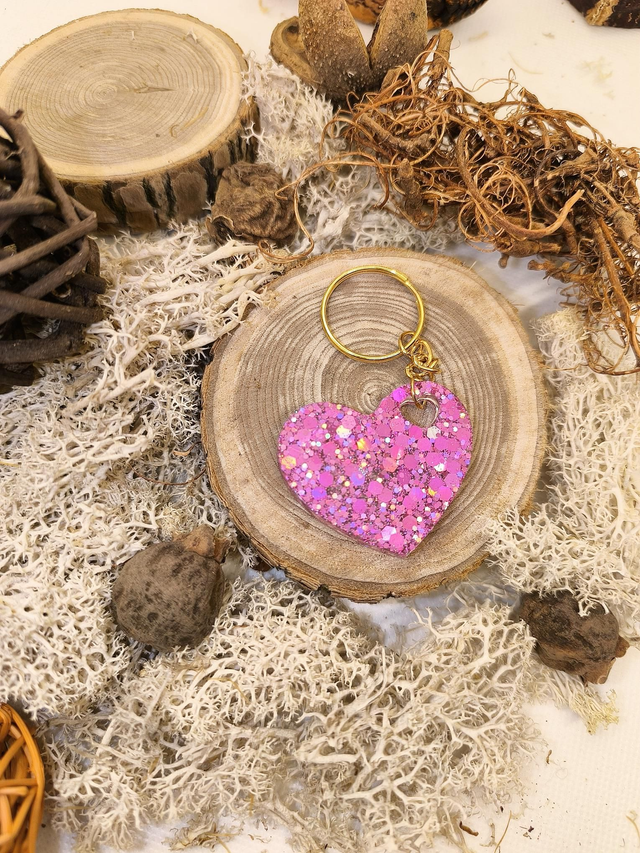 🎀 Porte-clés Cœur Pailleté – Édition Spéciale Octobre Rose 🎀